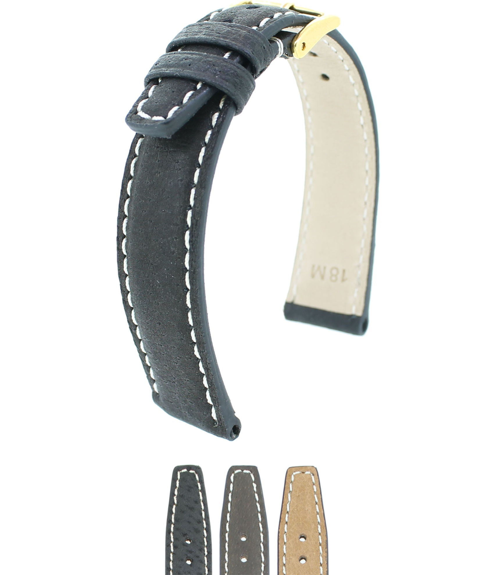 Dieses handvernähte Uhrenband aus hochwertigem Schweinsleder überzeugt durch seine leichte Struktur und markante Kontrastnaht, die dem Band eine sportlich-elegante Note verleiht. Die abfallende Bandstärke von ca. 3,5 mm auf 3,0 mm sorgt für angenehmen Tragekomfort bei gleichzeitig robuster Ausführung. Das Schweinsleder ist strapazierfähig, atmungsaktiv und entwickelt mit der Zeit eine natürliche Patina. Mit einer mittleren Länge von 114 x 82 mm eignet sich das Band ideal für normale Handgelenksgrößen. Die Kombination aus klassischem Material, präziser Handarbeit und sportlichem Design macht dieses Band zur idealen Wahl für anspruchsvolle Uhrenliebhaber.