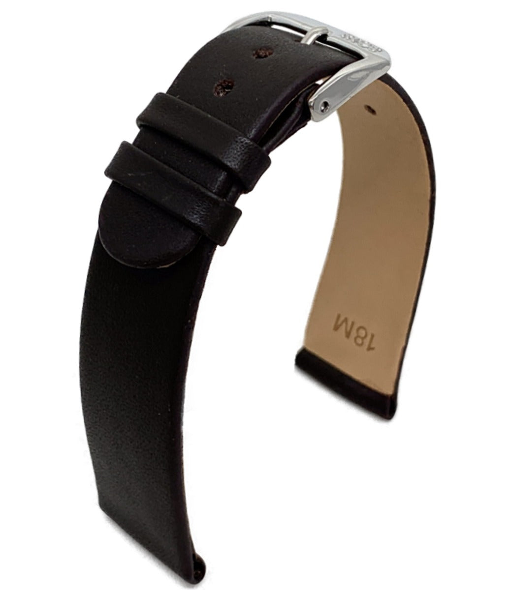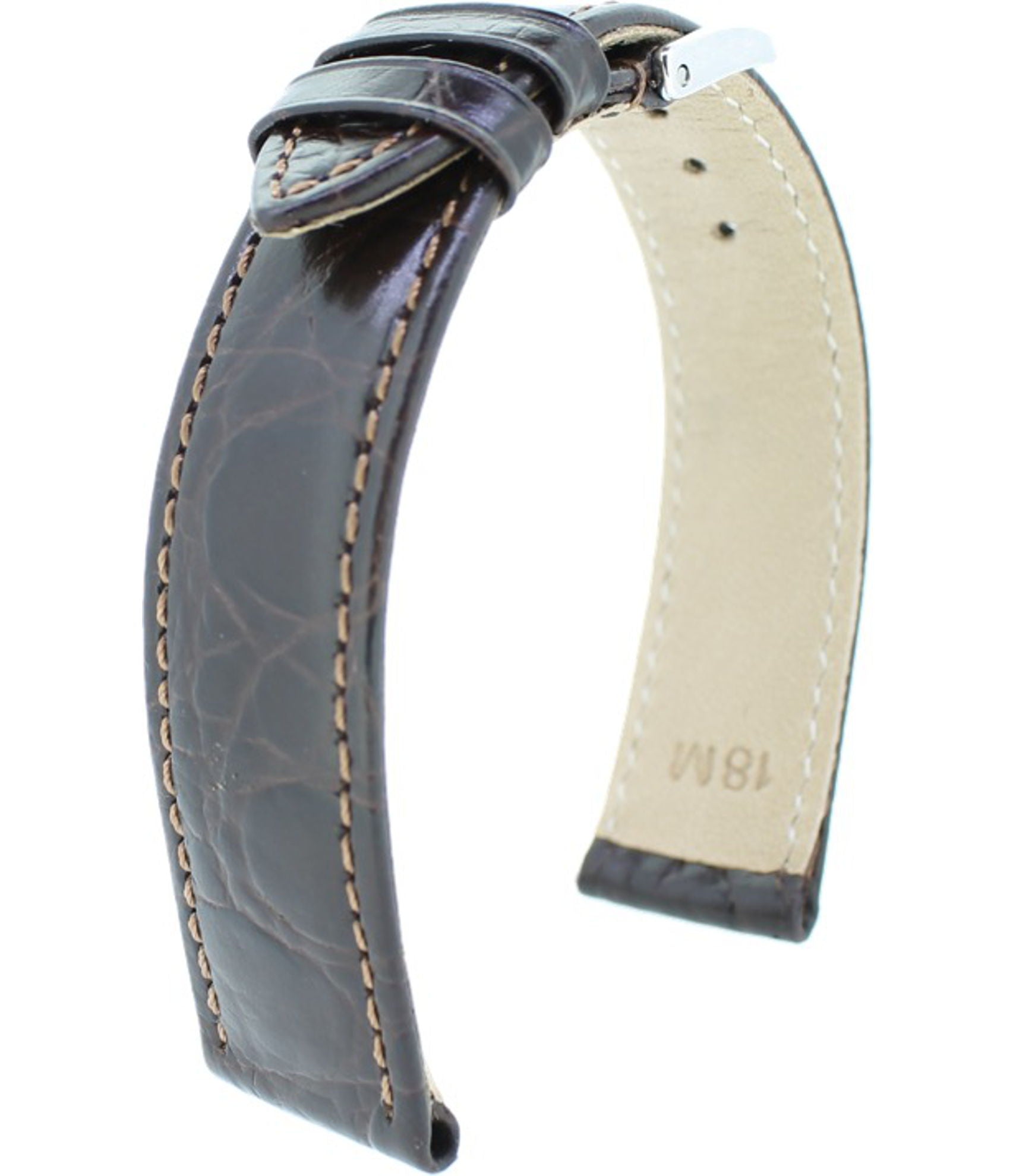 Die Dicke des Uhrenbandes, auch Bandstärke genannt, ist der Abstand vom Innenfutter zum Oberleder. Je massiver die Uhr ist, umso sinnvoller ist es, ein dickeres Band zu wählen. Die Dicke verjüngt sich oft zur Spitze. Auf der Abbildung beträgt die Bandstärke 3 mm.