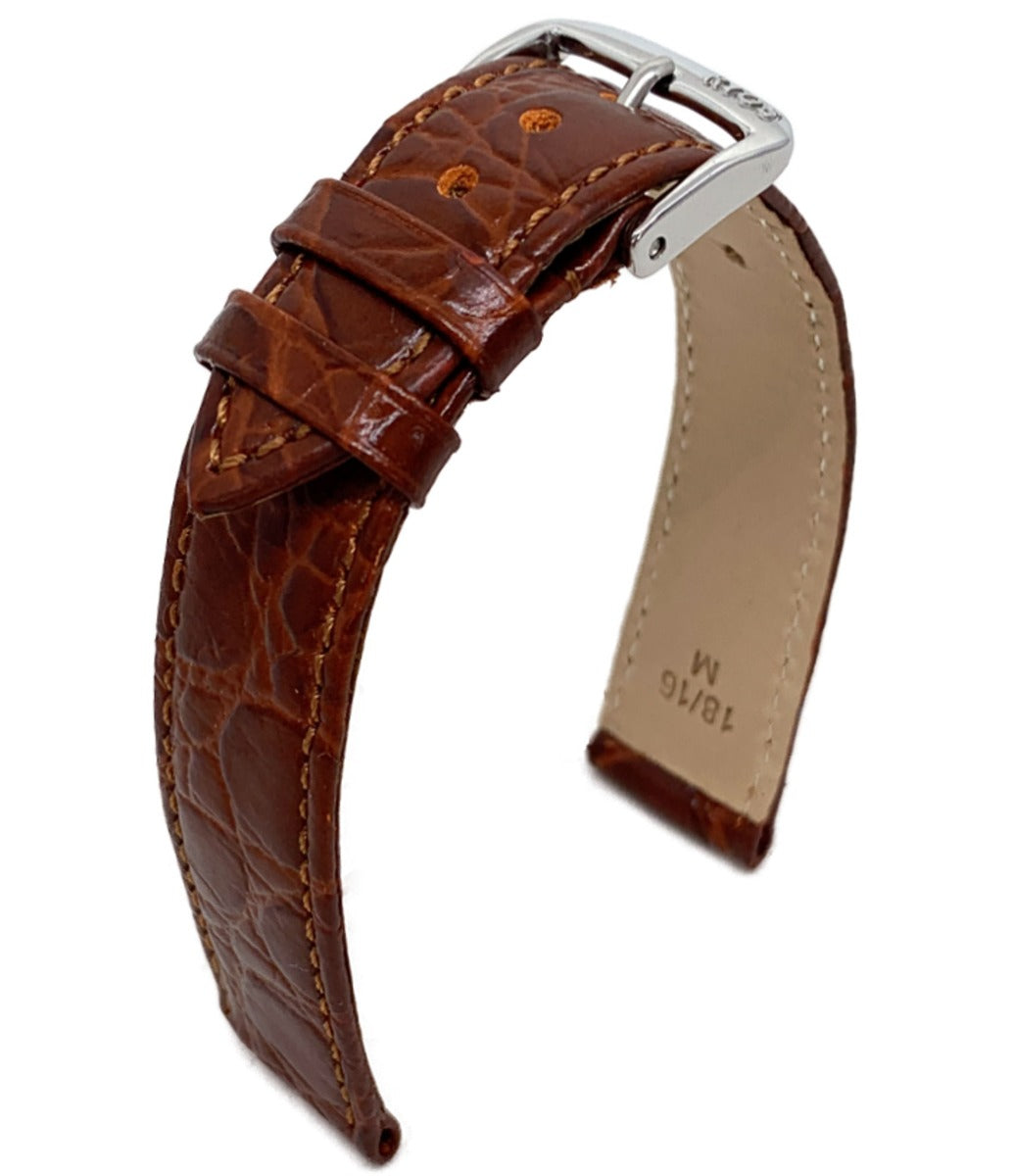 Dieses elegante Uhrenband aus hochwertigem Rindsleder überzeugt durch seine edle Alligator-Prägung und die dezente Ton in Ton Naht, die von Hand verarbeitet wurde. Die feine Struktur verleiht dem Band eine klassische, stilvolle Optik und macht es zur perfekten Ergänzung für hochwertige Uhren. Mit einer gleichmäßigen Bandstärke von ca. 2,5 mm bietet es angenehmen Tragekomfort bei gleichzeitig stabiler Haptik. Die kurze Länge von 104 x 72 mm eignet sich ideal für schmalere Handgelenke. Das Band kombiniert traditionelle Handwerkskunst mit langlebigem Material und zeitlosem Design und ist somit eine ausgezeichnete Wahl für Uhrenliebhaber mit Sinn für Qualität und Stil.