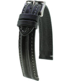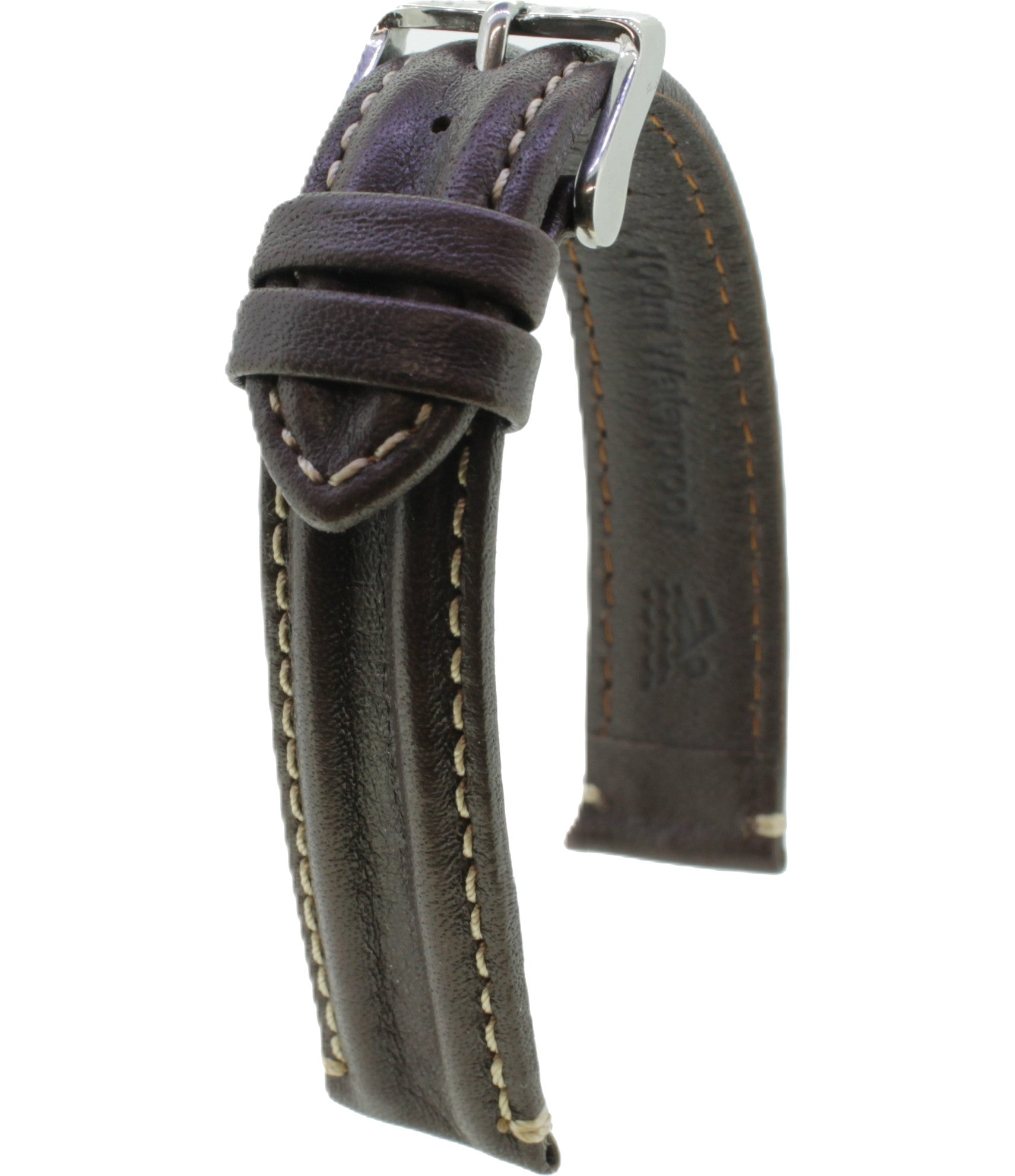 Die Dicke des Uhrenbandes, auch Bandstärke genannt, ist der Abstand vom Innenfutter zum Oberleder. Je massiver die Uhr ist, umso sinnvoller ist es, ein dickeres Band zu wählen. Die Dicke verjüngt sich oft zur Spitze. Auf der Abbildung beträgt die Bandstärke 3 mm.