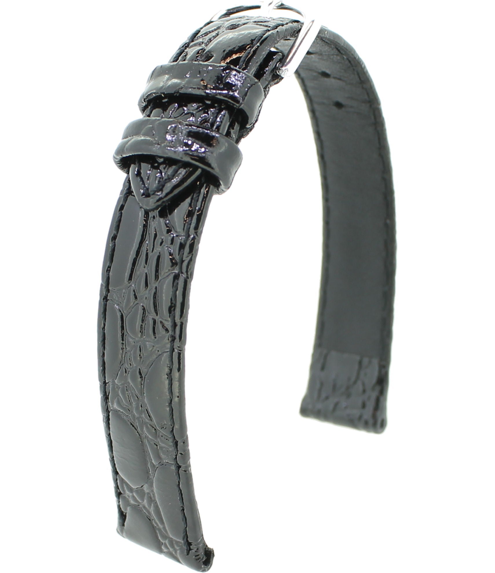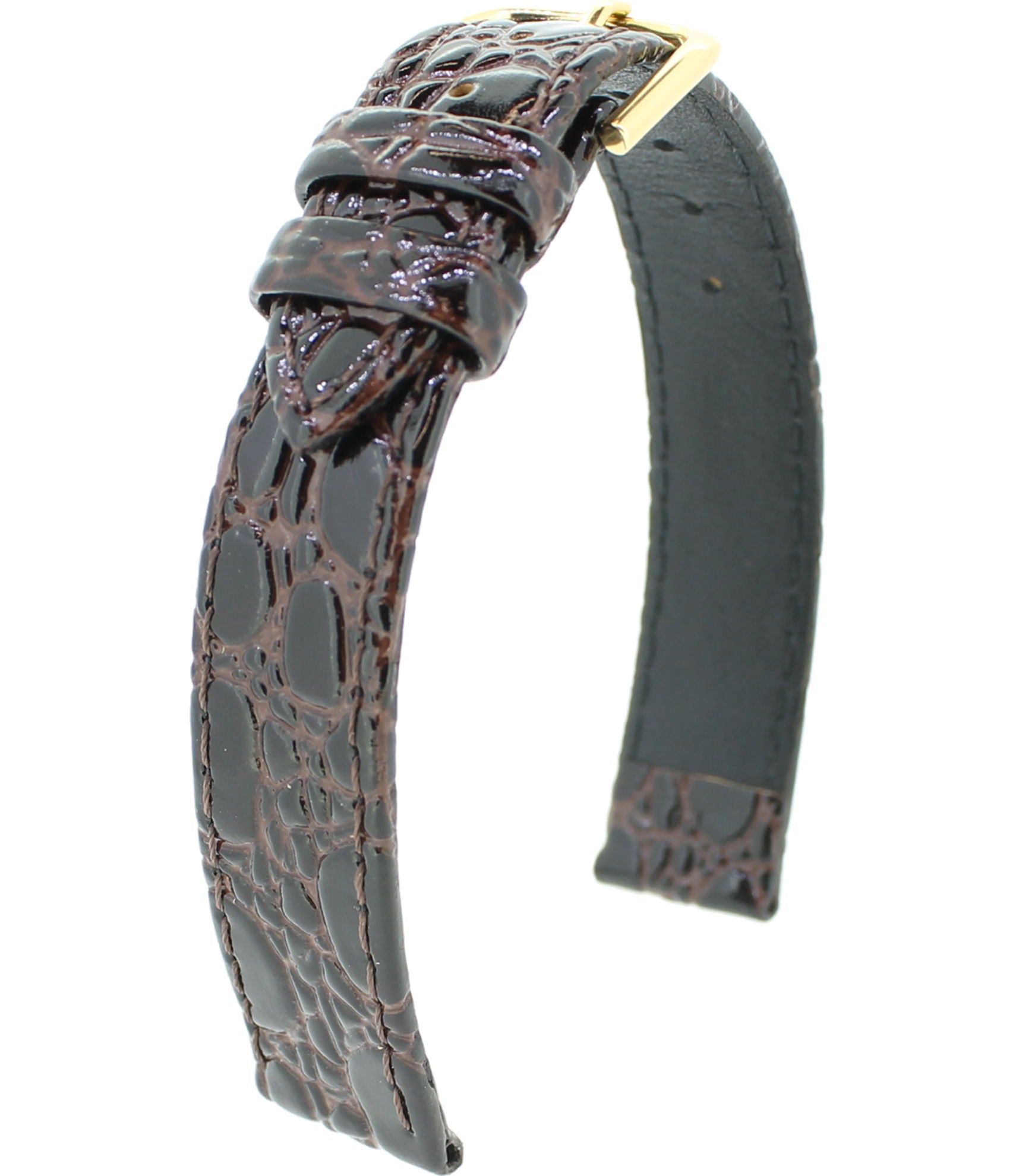 Entdecken Sie unser exquisites Uhrenarmband aus feinstem Kalbsleder, das mit einer glänzenden Kroko-Prägung für einen Hauch von Luxus sorgt. Perfekt vernäht mit einer Ton in Ton-Naht, bietet dieses Band eine makellose Ästhetik, die Ihre Uhr zum Strahlen bringt. Die lackierte Oberfläche unterstreicht die Eleganz Ihrer Uhr und macht es zum idealen Partner für mit Edelsteinen besetzte Zeitmesser. Mit einer Bandstärke von etwa 3.0 mm und verfügbar in den klassischen Farben Schwarz und Dunkelbraun sowie in fünf verschiedenen Breiten, passt dieses Uhrenarmband sich perfekt an Ihren Stil und Ihre Bedürfnisse an.