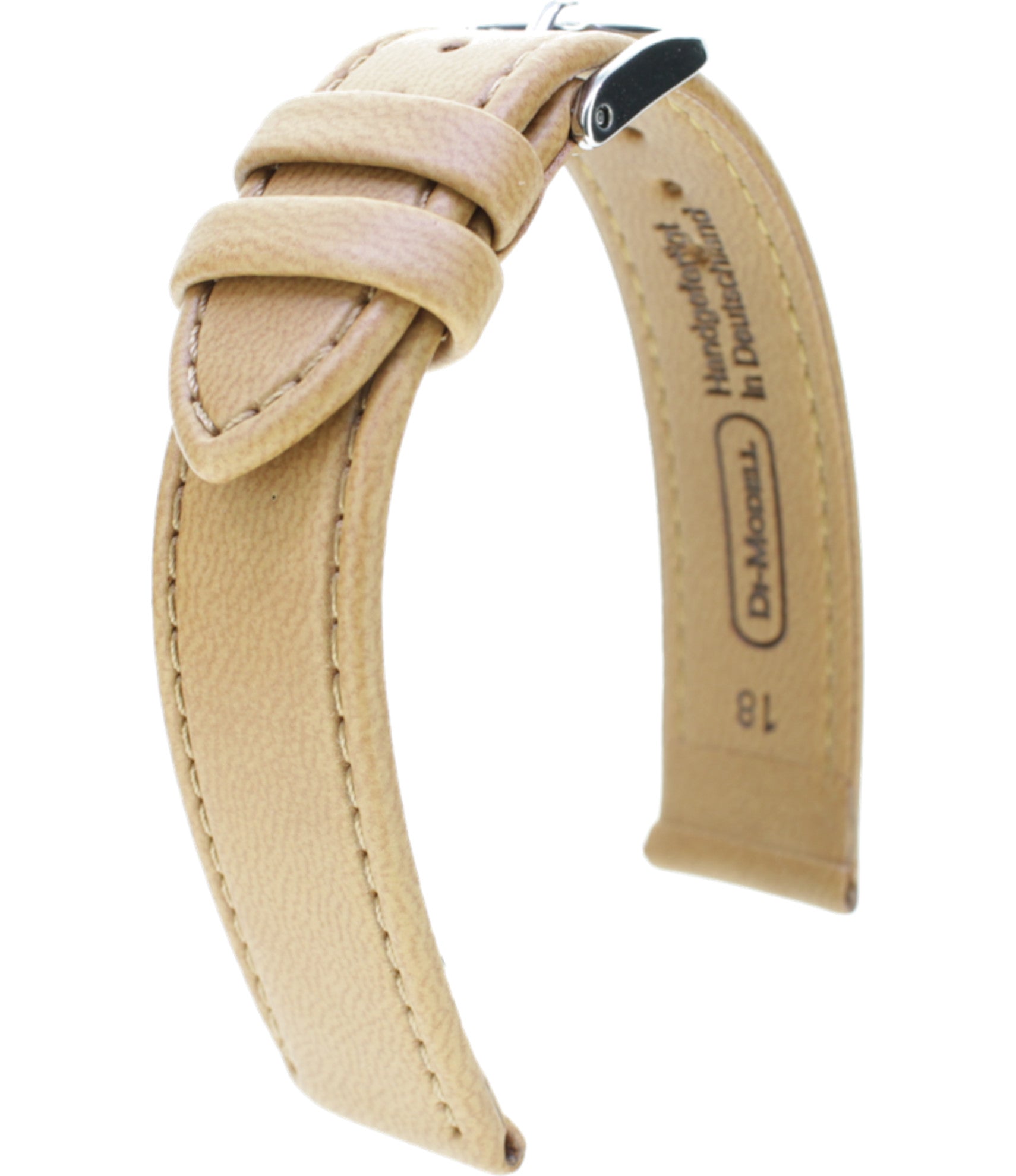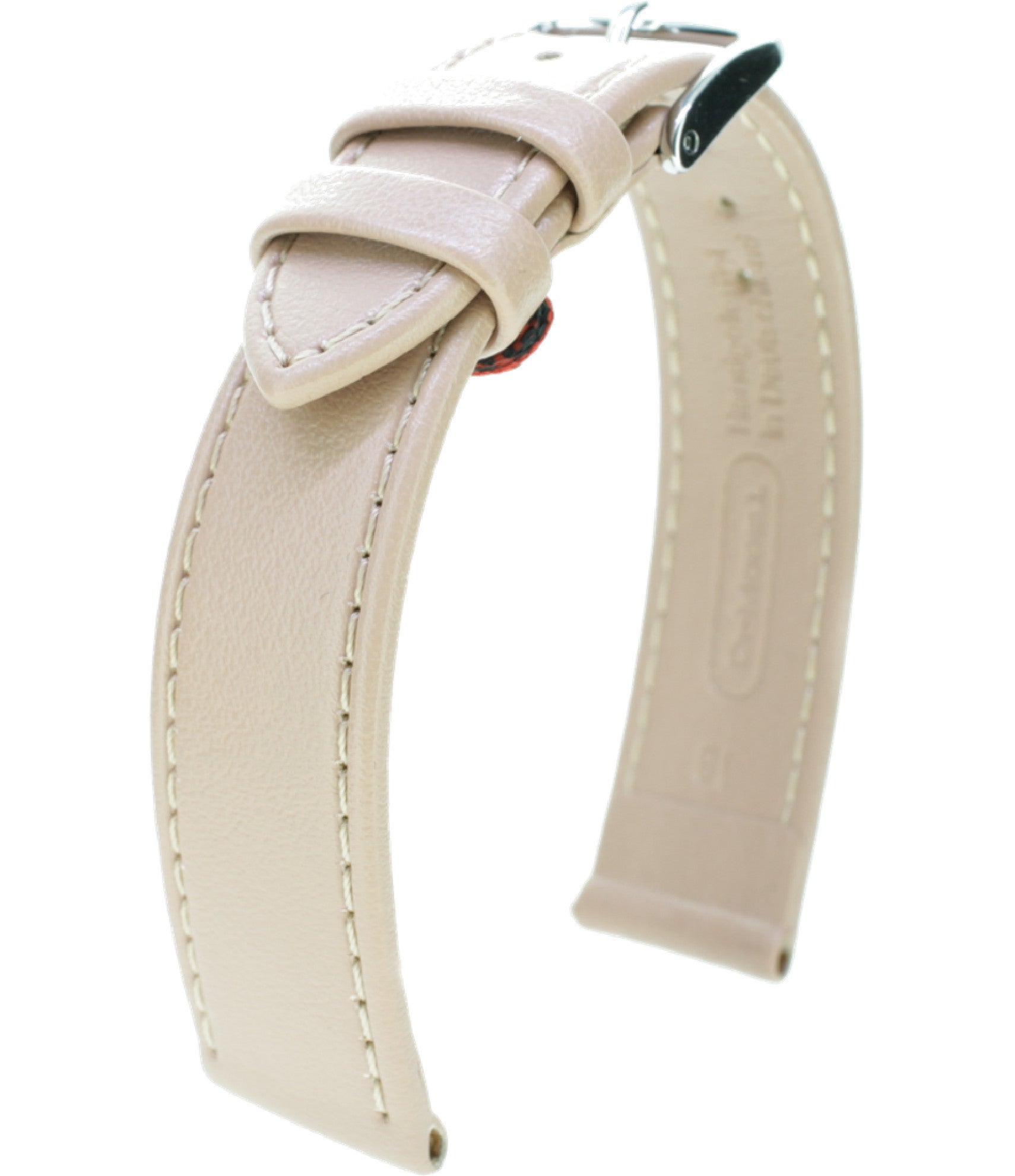 Die Dicke des Uhrenbandes, auch Bandstärke genannt, ist der Abstand vom Innenfutter zum Oberleder. Je massiver die Uhr ist, umso sinnvoller ist es, ein dickeres Band zu wählen. Die Dicke verjüngt sich oft zur Spitze. Auf der Abbildung beträgt die Bandstärke 3 mm.