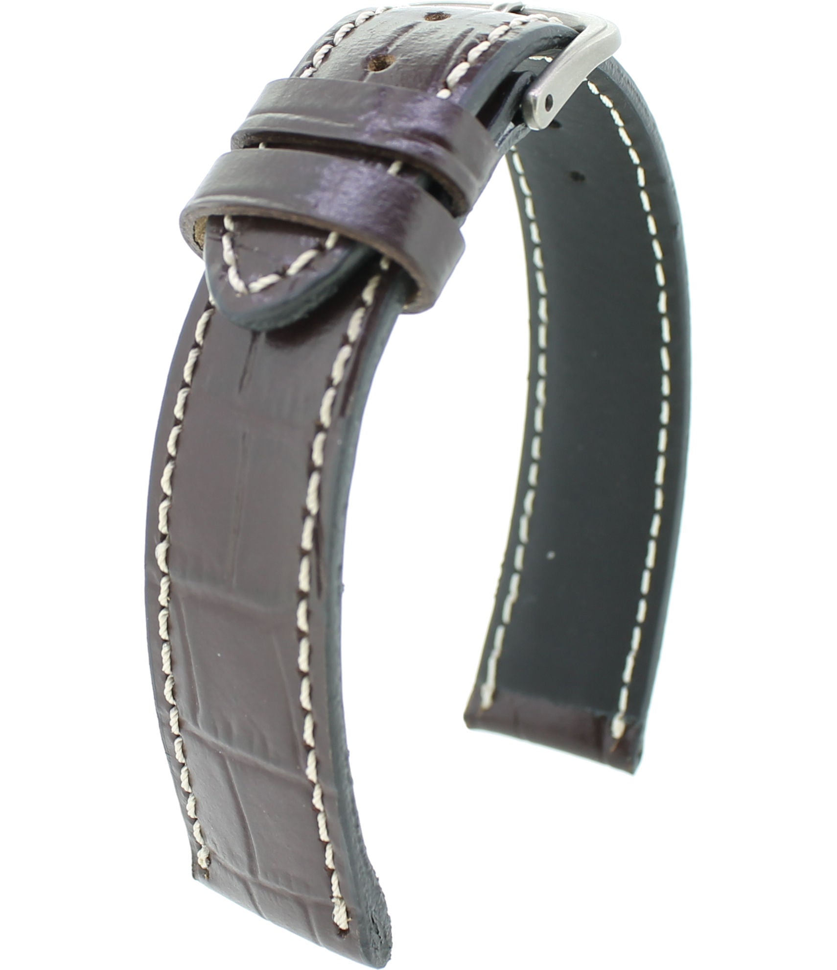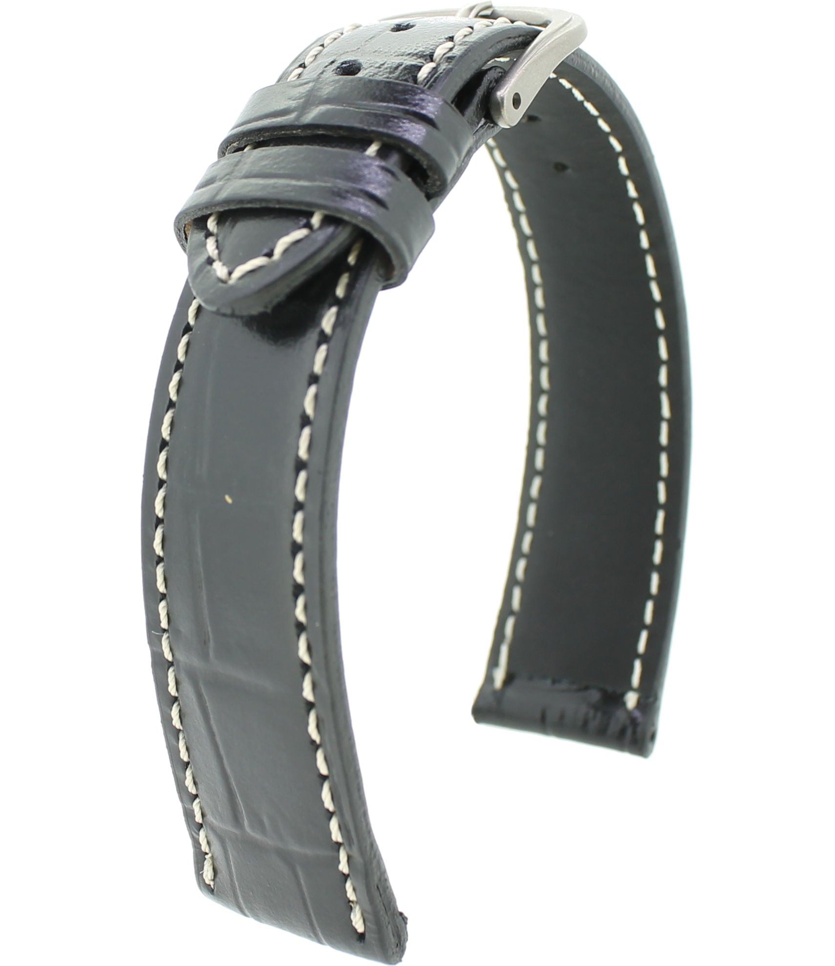 Alligator-Prägung Uhrenband Rimini KN mit weißer Kontrastnaht und Titanschließe