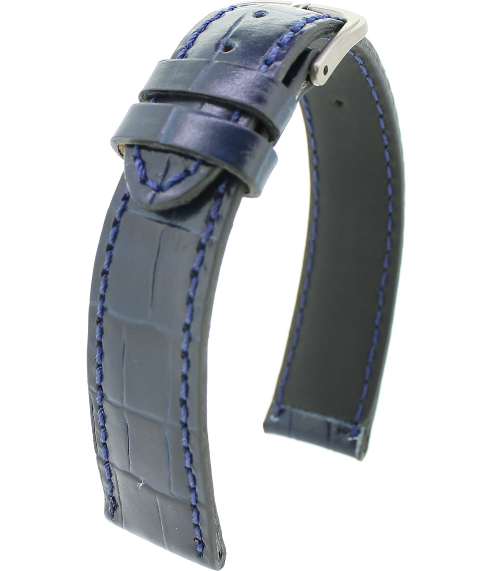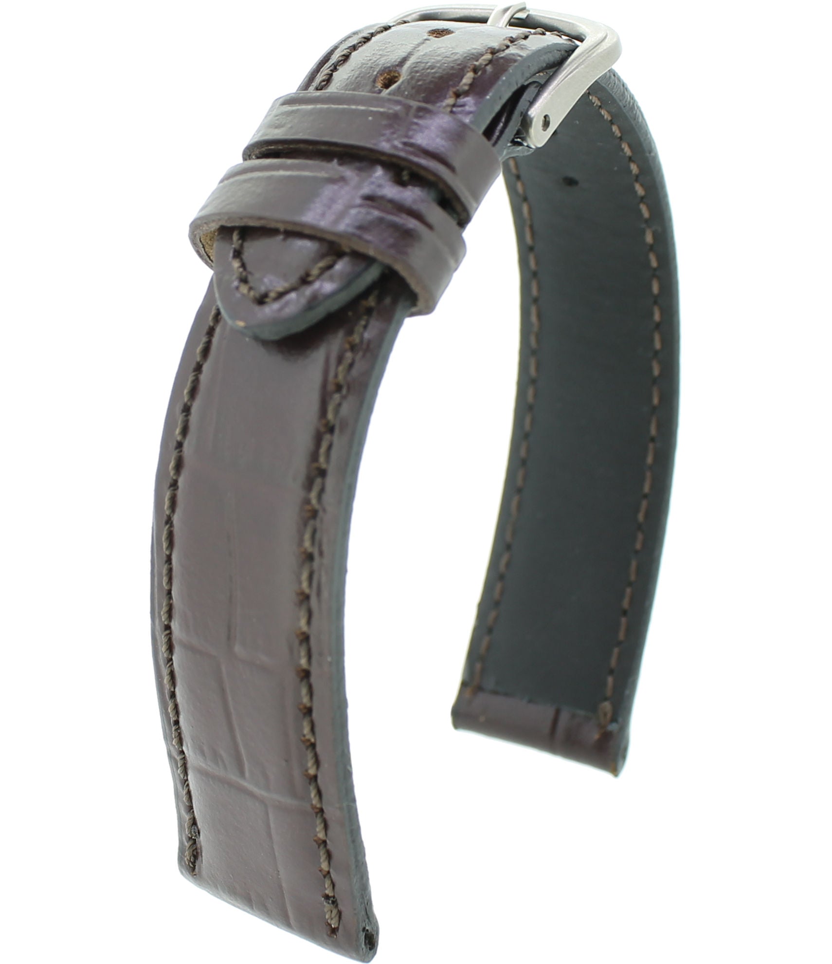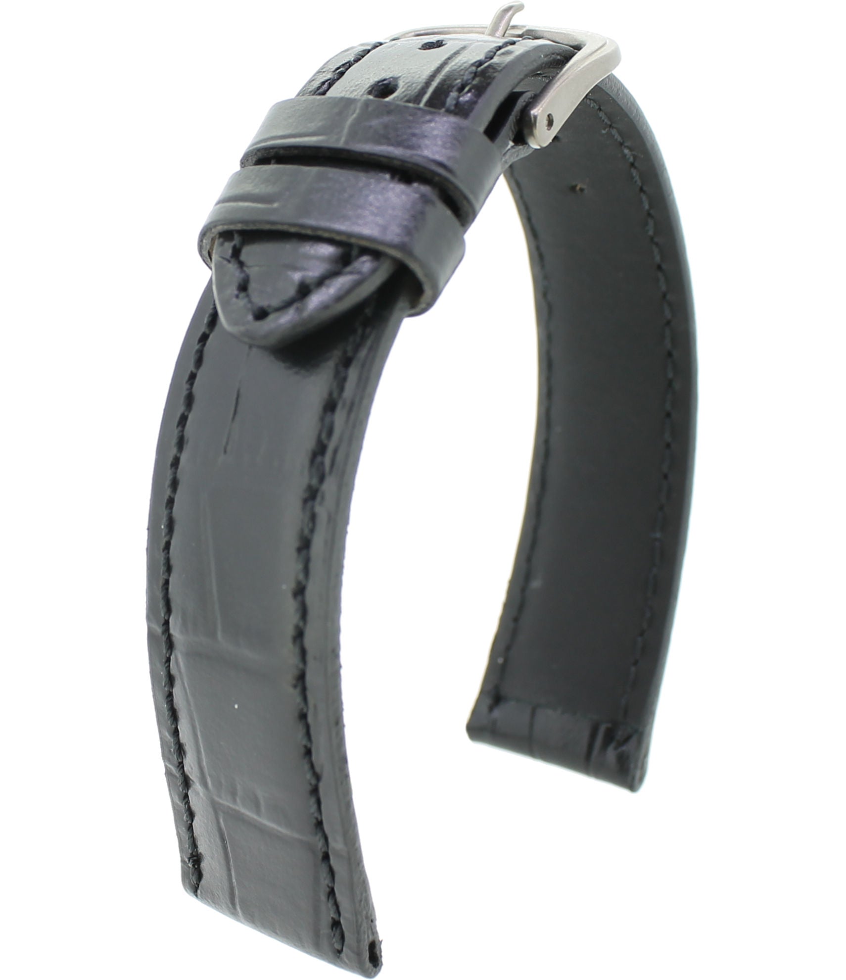 Das Rimini Band überzeugt durch geprägtes Kalbsleder in Alligatoroptik und ein hautfreundliches Innenfutter aus Kautschuk. Die Ton in Ton Naht und Bandstärke von ca. 3.5 mm sorgen für eleganten Komfort. Größe S 110 x 70 mm, ideal für stilvolle Uhrenliebhaber mit Anspruch.