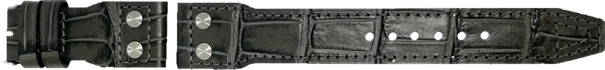 Entdecken Sie unser exklusives Ersatzuhrenarmband für die IWC Pilot, gefertigt aus feinstem Kalbsleder, das sich durch seine Weichheit und Flexibilität auszeichnet. Die sorgfältige Alligatorenprägung und die präzise Ton-in-Ton Nahtführung verleihen diesem Uhrenarmband eine authentische und elegante Optik. Ausgestattet mit charakteristischen Nieten und in präziser Handarbeit in Deutschland hergestellt, bietet dieses Uhrenarmband eine perfekte Kombination aus Tradition und moderner Fertigungskunst. Verfügbar in den Farben Schwarz, Dunkelbraun, Mittelbraun und Grau, passt das 22 mm breite Band ideal zu Ihrer IWC Pilot Uhr. Der längere Lochteil des Bandes misst 13,5 cm, während der kürzere Teil 5,5 cm lang ist, was eine optimale Passform und hohen Tragekomfort garantiert.