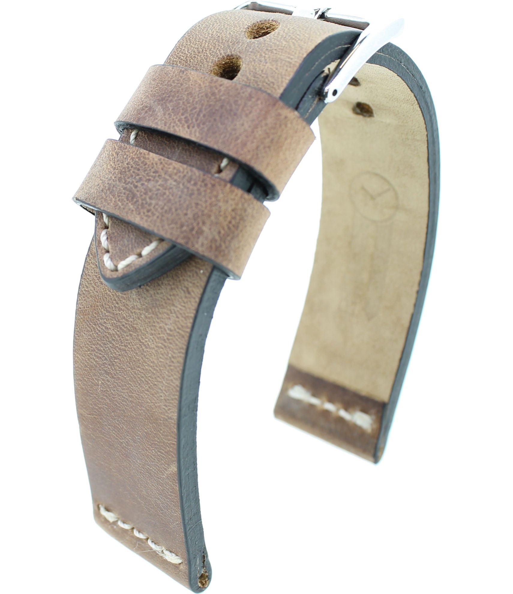 Robustes Vintage Rindleder-Uhrenband mit handvernähter Kontrastnaht