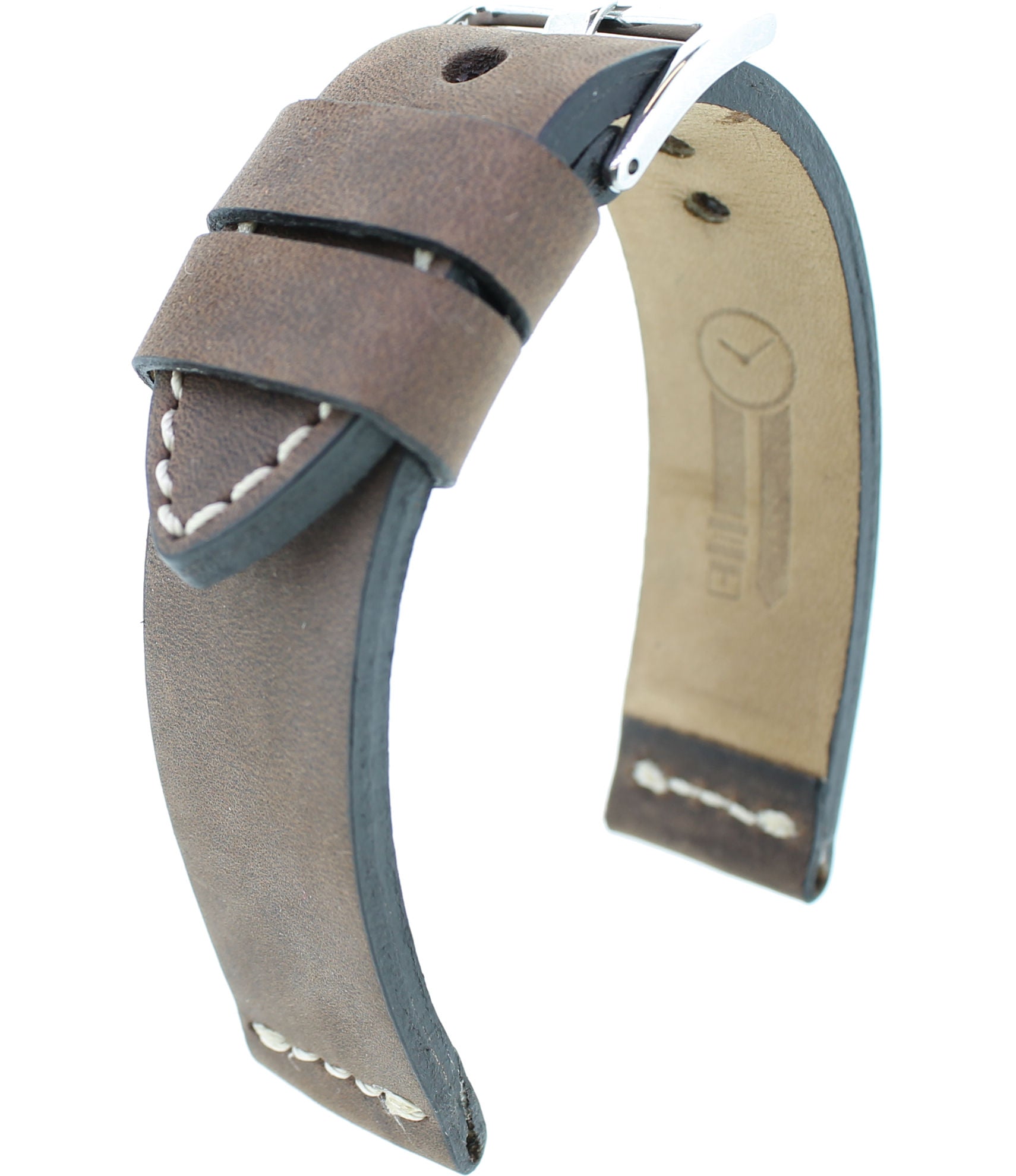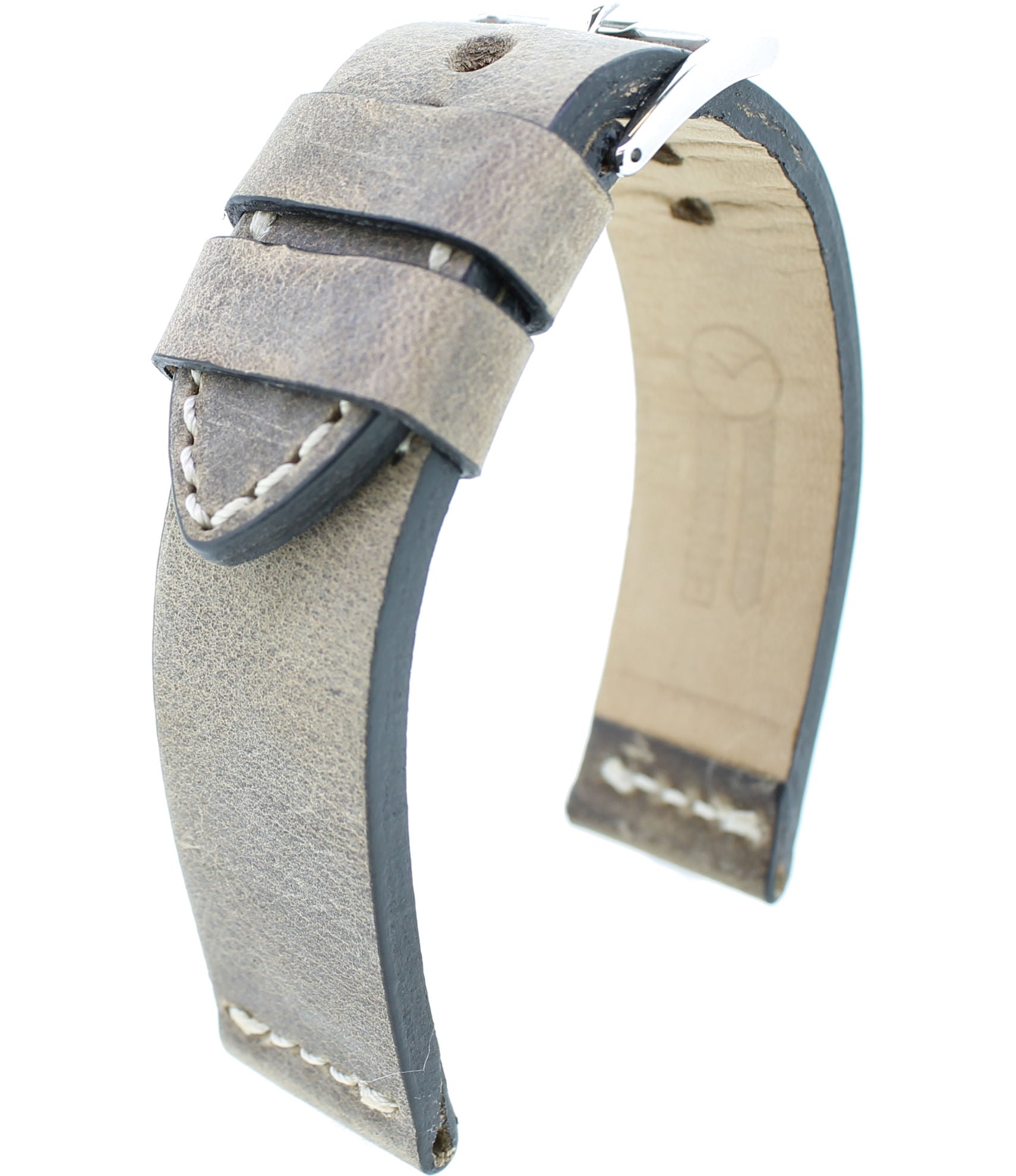 Entdecken Sie die perfekte Symbiose aus Stil und Natur mit unserem Vintage-Uhrenband aus hochwertigem Rindleder. Die erdigen Farbtöne des Leders bringen ein Stück Natur direkt an Ihr Handgelenk, während die robuste Bandstärke von 3,5 mm Langlebigkeit verspricht. Jedes Band wird sorgfältig von Hand mit einer weißen Kontrastnaht vernäht, was jedes Stück zu einem einzigartigen Kunstwerk macht. Die sanfte Oberfläche des Leders garantiert zudem einen außergewöhnlichen Tragekomfort. Dieses Uhrenband ist nicht nur ein Accessoire, sondern ein Statement für alle, die Wert auf Qualität und handwerkliche Finesse legen.