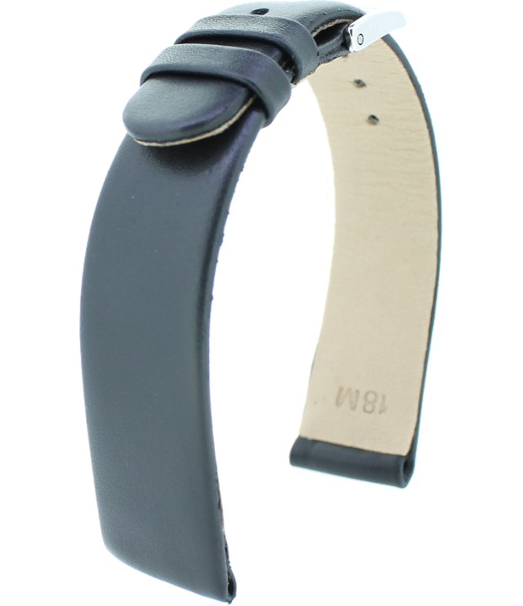 Die Breite der Schliesse misst man auf der Innenseite. Die Uhrenbänder verlaufen oft konisch von der Uhr zur Schliesse. Das heisst, dass die Breite der Schliesse schmaler ist, als die Breite beim Anstoss. Dies ist dringend zu beachten, wenn die Schliesse des alten Uhrenbandes weiterhin genutzt werden möchte oder wenn eine Faltschliesse gewünscht wird. Auf der Abbildung beträgt die Breite der Schliesse 18 mm.