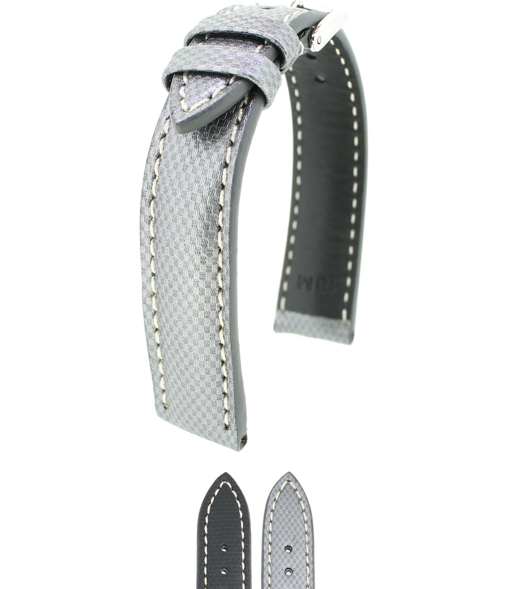 L'épaisseur du bracelet de montre, aussi appelée épaisseur du bracelet, correspond à la distance entre la doublure intérieure et le cuir supérieur. Plus la montre est lourde, plus il est judicieux de choisir un bracelet épais. L'épaisseur diminue souvent vers l'extrémité. Sur l'illustration, l'épaisseur du bracelet est de 3 mm.
