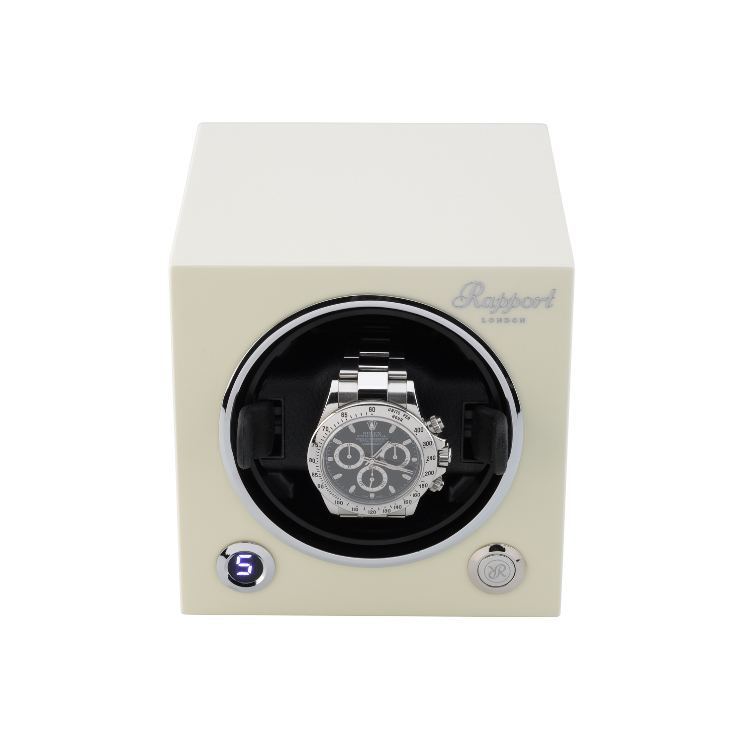 Der Evo Cube MKIII ist der meistverkaufte Uhrenbeweger von Rapport London. Er ist sowohl als Einzelstück wie auch in Kombination mit mehreren einsetzbar. Die verschiedenen eleganten Hochglanzfarben laden zum kombinieren ein. Dank dem Rahmen können Sie einfach zwei oder vier Stück miteinander kombinieren. Den Rahmen finden Sie ebenfalls in unserem Shop.