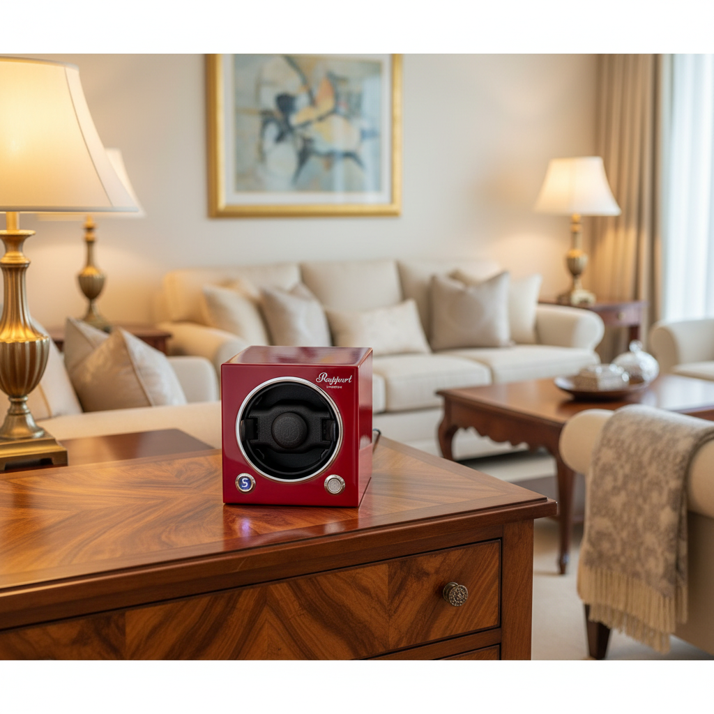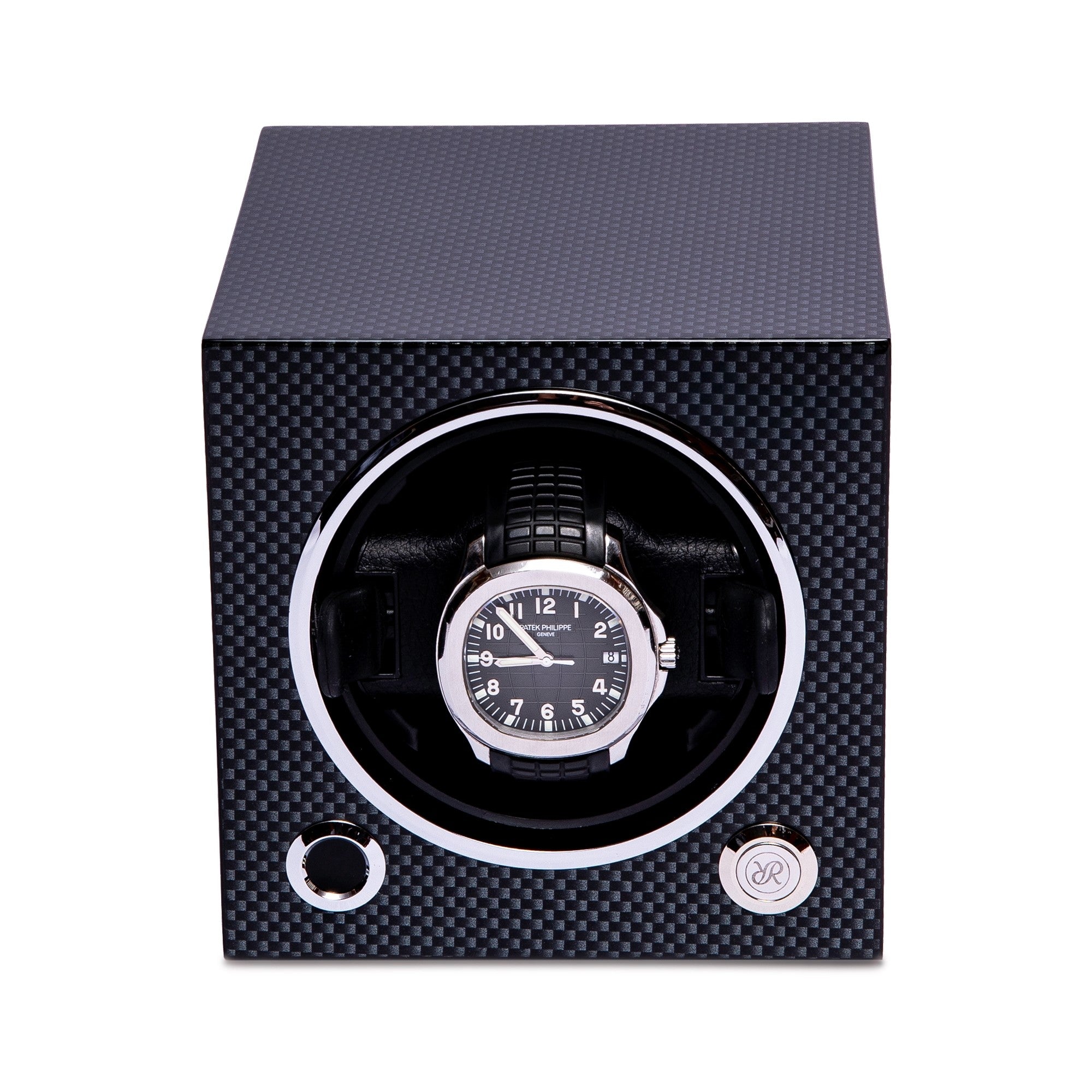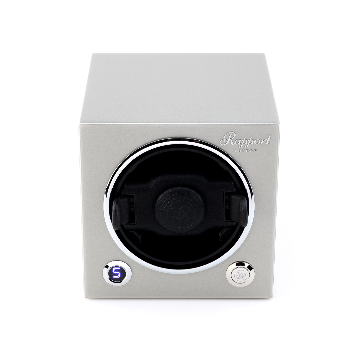 Der Aufzugsmechanismus läuft praktisch geräuschlos und bietet mehrere Kontrollstufen, darunter drei Richtungseinstellungen und eine Auswahl an Anzahl Umdrehungen pro Tag, die für die meisten hochwertigen Automatikuhren auf dem heutigen Markt geeignet sind.