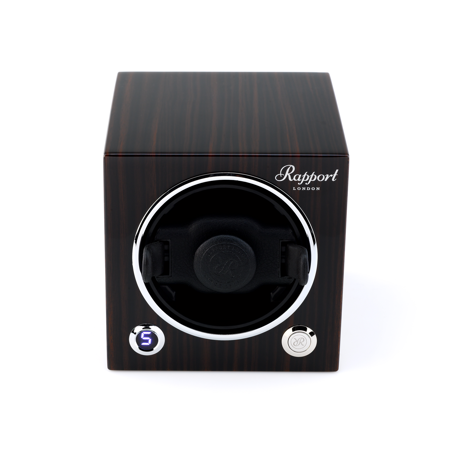 Remontoir EVO Cube MKIII de Rapport London finition brillante, bois, coussin en cuir