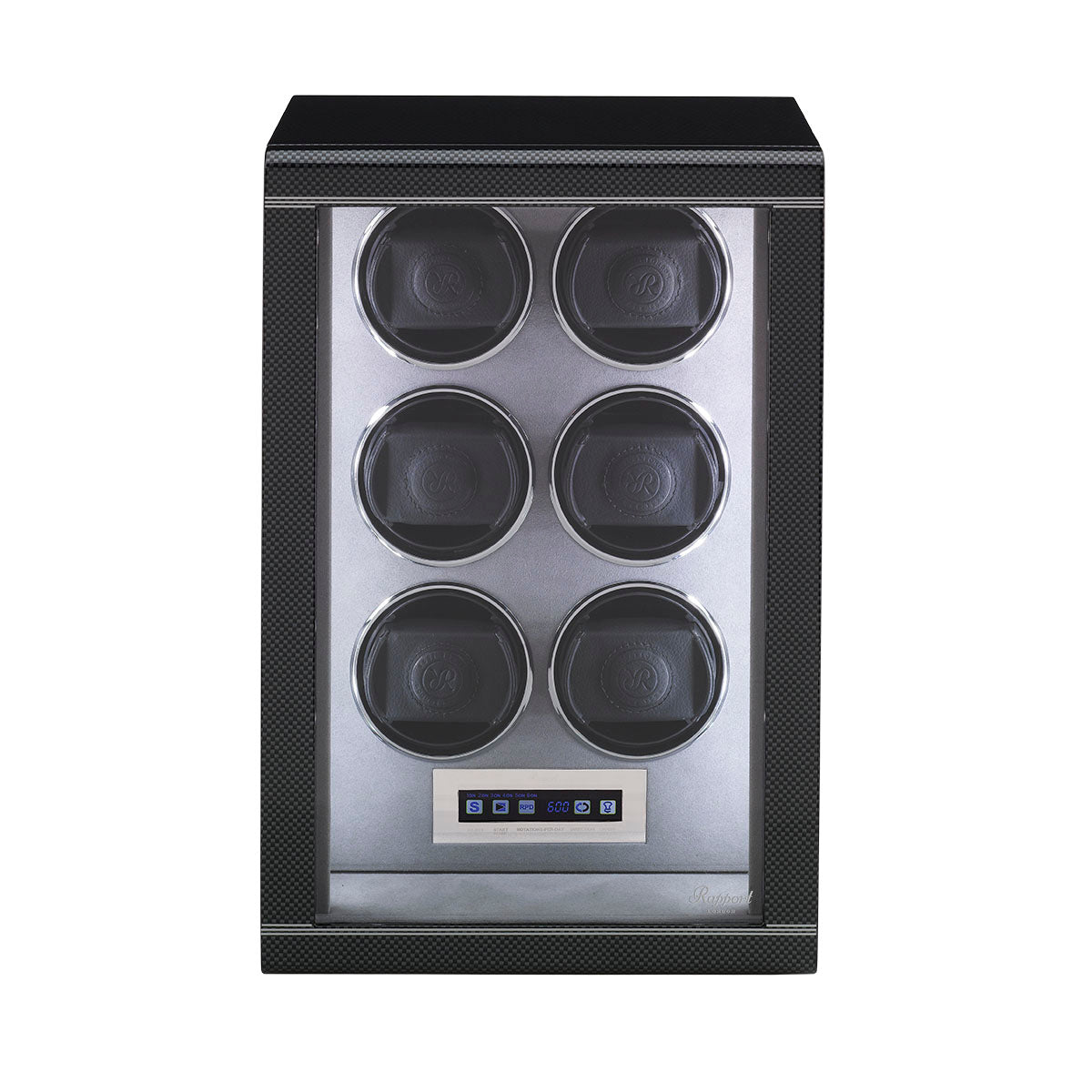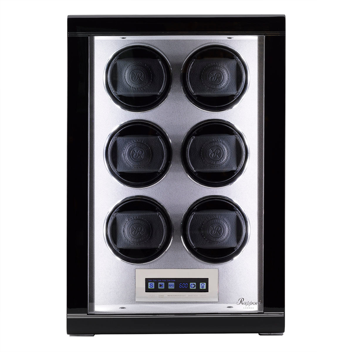Der Formula Six Uhrenbeweger von Rapport London mit elegantem Design. Er hält Ihre mechanische Uhr in Bewegung, sodass Sie Zeit- und Datumseinstellungen nicht erneut vornehmen müssen. Die abschließbare Glastür mit drei markanten Streifen schützt die Uhr vor Staub und Beschädigungen und unterstreicht den hochwertigen Charakter dieses Uhrenbewegers. Über das intuitive LCD-Bedienfeld können Sie verschiedene Programme einfach einstellen, während die Innenbeleuchtung einen stilvollen Akzent setzt. Ideal für anspruchsvolle Uhrenträgerinnen und Uhrenträger, die Wert auf Qualität, Handwerkskunst und Pflege legen.