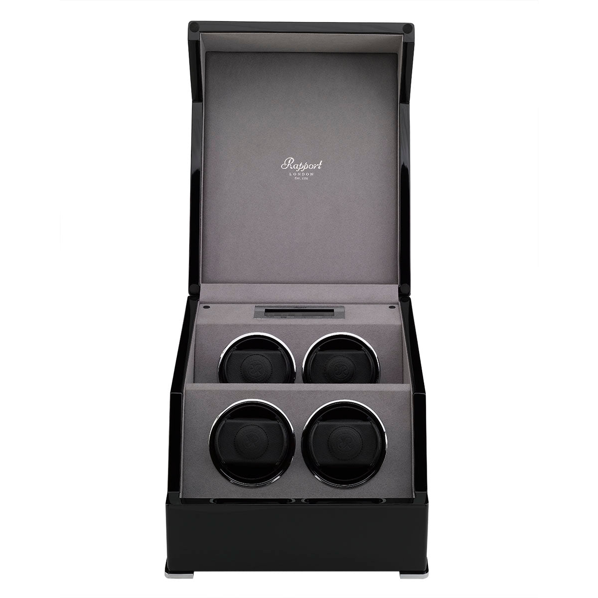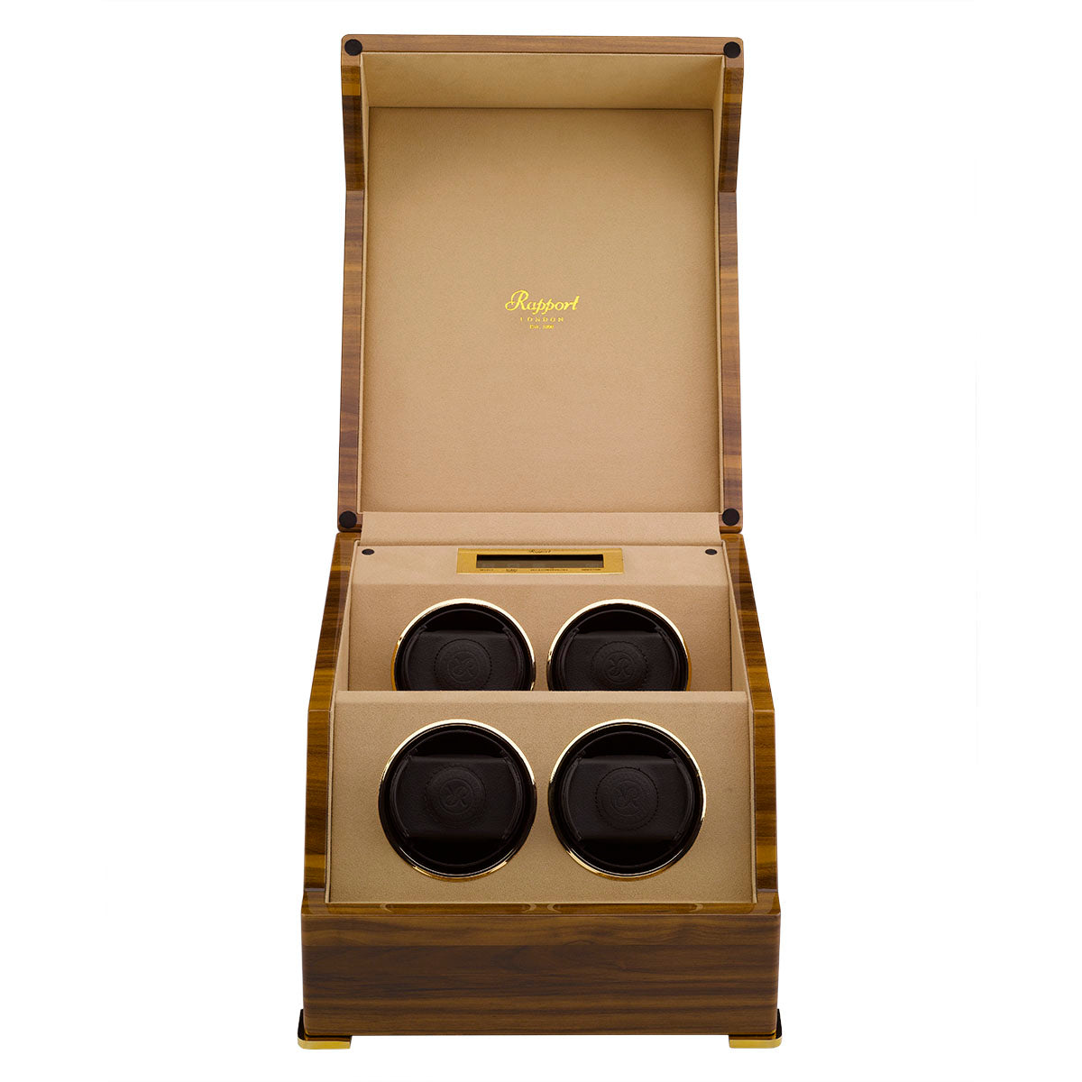 Der Perpetua Quad Watch Winder verbindet traditionelle Handwerkskunst mit moderner Technik. Das handgefertigte Gehäuse im klassischen Rapport Design verleiht jedem Zuhause eine elegante Note und schützt Ihre Automatikuhren optimal. Die dritte Generation dieses Bestsellers wurde verfeinert, um Ihnen eine einfache Handhabung und höchste Funktionalität zu bieten. Das luxuriöse Innenfutter aus weichem Wildleder schont Ihre Uhrenbänder aus Leder, Edelstahl oder Kautschuk. Über das diskret integrierte LCD-Touchscreen-Display steuern Sie die Drehrichtung und den Aufzugsmodus individuell nach Ihren Bedürfnissen. Die nahezu geräuschlosen Motoren sorgen für einen ungestörten Betrieb. Die Stromversorgung erfolgt über ein weltweit einsetzbares DC-Netzteil, das im Lieferumfang enthalten ist. Mit dem Perpetua Uhrenbeweger profitieren Sie von Schweizer Qualität und nachhaltiger Verarbeitung – ein perfektes Zubehör für anspruchsvolle Uhrenträgerinnen und Uhrenträger.