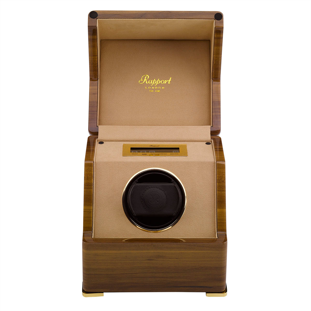 Der Perpetua Single Watch Winder verbindet traditionelle Handwerkskunst mit moderner Technik. Das handgefertigte Gehäuse im klassischen Rapport Design verleiht jedem Zuhause eine elegante Note und schützt Ihre Automatikuhren optimal. Die dritte Generation dieses Bestsellers wurde verfeinert, um Ihnen eine einfache Handhabung und höchste Funktionalität zu bieten. Das luxuriöse Innenfutter aus weichem Wildleder schont Ihre Uhrenbänder aus Leder, Edelstahl oder Kautschuk. Über das diskret integrierte LCD-Touchscreen-Display steuern Sie die Drehrichtung und den Aufzugsmodus individuell nach Ihren Bedürfnissen. Die nahezu geräuschlosen Motoren sorgen für einen ungestörten Betrieb. Die Stromversorgung erfolgt über ein weltweit einsetzbares DC-Netzteil, das im Lieferumfang enthalten ist. Mit dem Perpetua Uhrenbeweger profitieren Sie von Schweizer Qualität und nachhaltiger Verarbeitung – ein perfektes Zubehör für anspruchsvolle Uhrenträgerinnen und Uhrenträger.