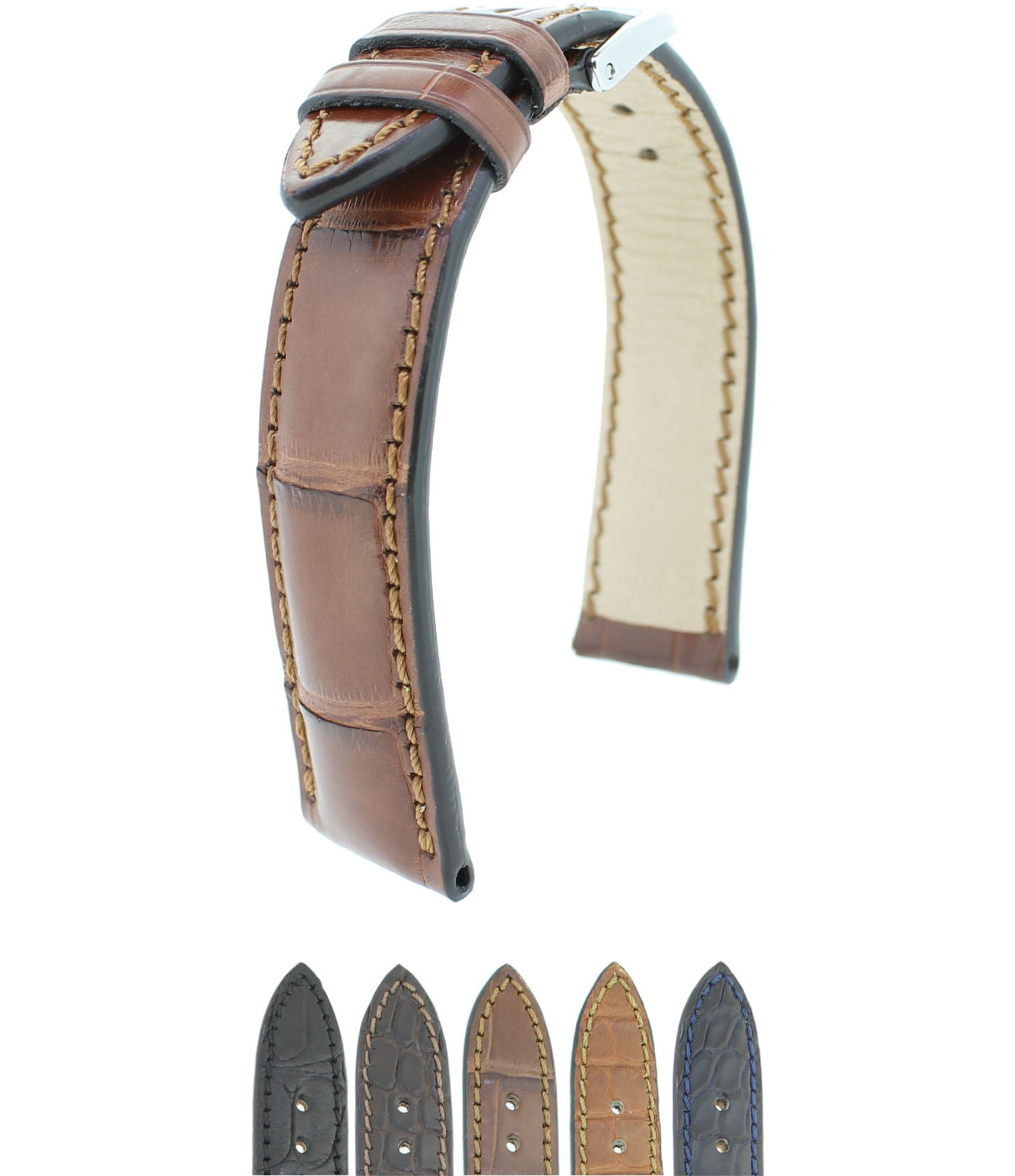 Découvrez le savoir-faire exquis de notre bracelet de montre en cuir d'alligator cousu main. Chaque bracelet est soigneusement confectionné en cuir d'alligator de première qualité et arbore des coutures ton sur ton qui allient élégance et sophistication. Sa finition mate et son épaisseur conique de 6,0 à 3,0 mm garantissent un confort optimal et une esthétique élégante. Ce bracelet est le choix idéal pour les amateurs de montres qui apprécient la qualité et le style.