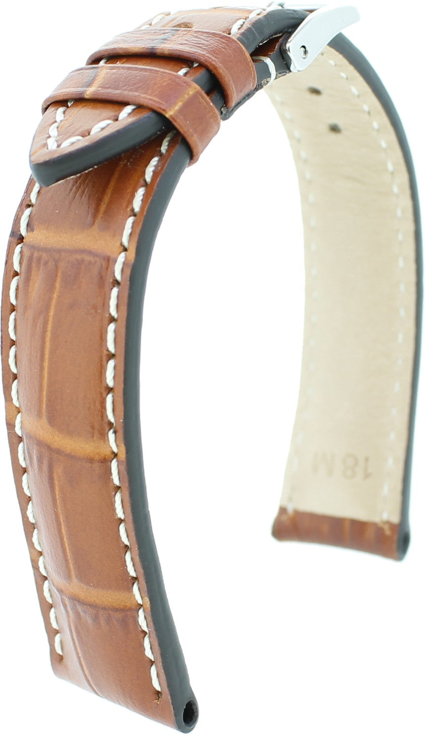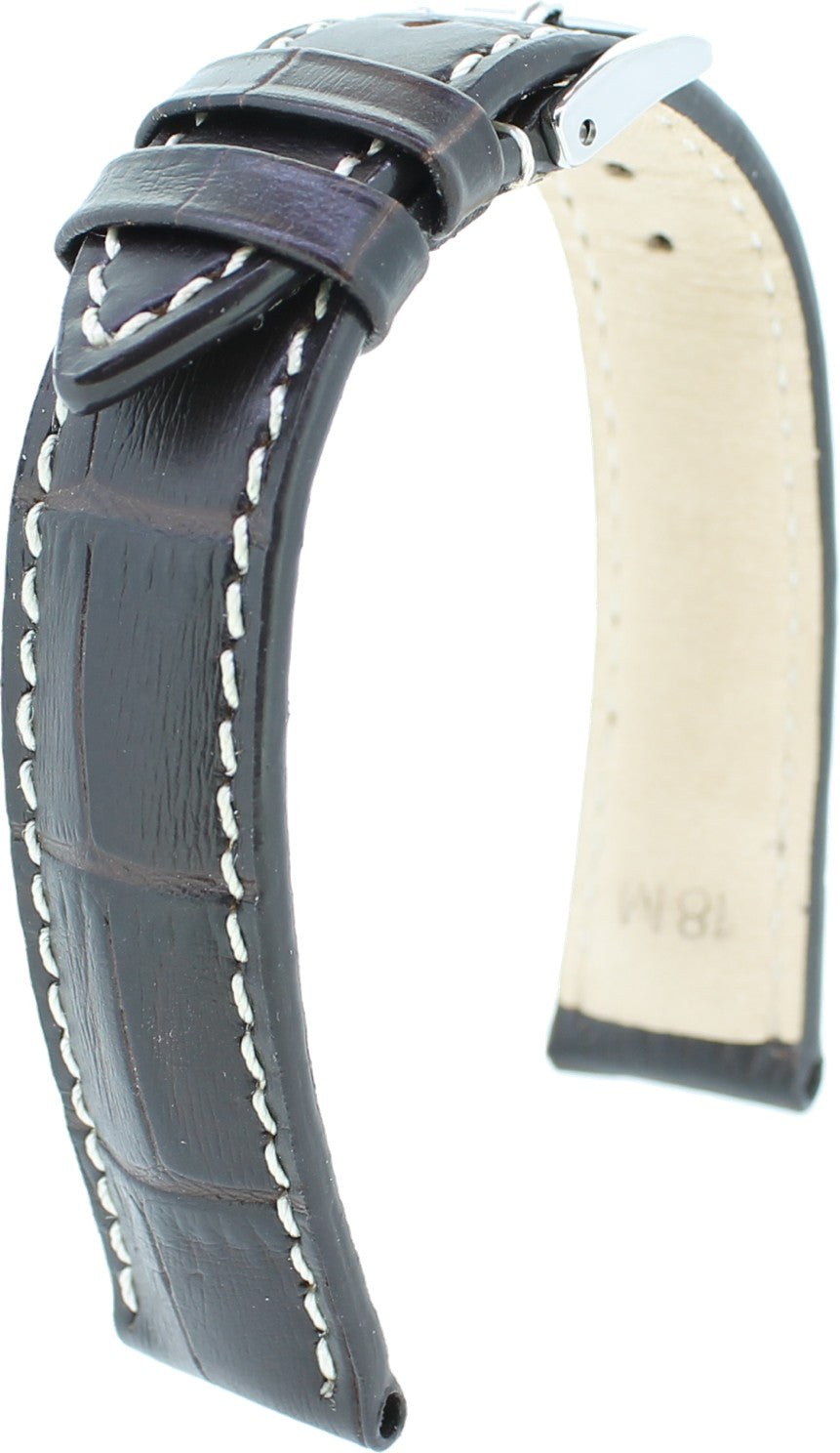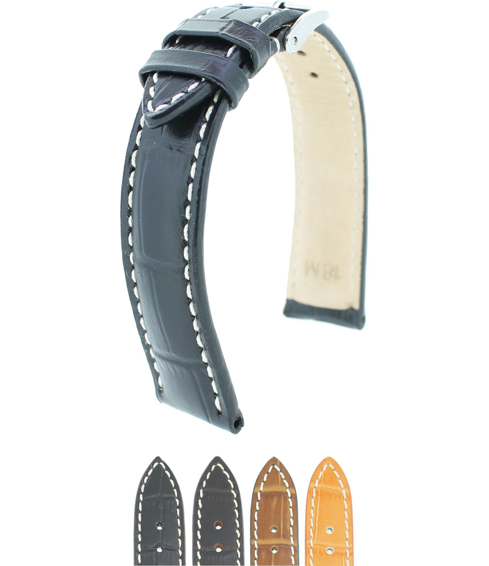 Cet élégant bracelet de montre en cuir de vachette séduit par son remarquable grain alligator et sa finition mate, lui conférant un look à la fois sophistiqué et naturel. Les coutures contrastées, soigneusement réalisées à la main, apportent une touche de qualité et une touche sportive. Son épaisseur effilée, d'environ 6,0 mm à 3,0 mm, offre un confort optimal tout en garantissant stabilité et durabilité. Robuste et durable, le cuir de vachette se patine avec le temps. D'une longueur moyenne de 114 x 82 mm, ce bracelet est idéal pour les poignets moyens. Un bracelet élégant et résistant pour ceux qui recherchent un look classique et un design original.
