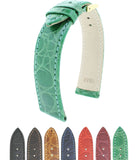Dieses elegante Uhrenband aus hochwertigem Rindsleder überzeugt durch seine edle Alligator-Prägung und die dezente Ton in Ton Naht, die von Hand verarbeitet wurde. Die feine Struktur verleiht dem Band eine klassische, stilvolle Optik und macht es zur perfekten Ergänzung für hochwertige Uhren. Mit einer gleichmäßigen Bandstärke von ca. 2,5 mm bietet es angenehmen Tragekomfort bei gleichzeitig stabiler Haptik. Die kurze Länge von 104 x 72 mm eignet sich ideal für schmalere Handgelenke. Das Band kombiniert traditionelle Handwerkskunst mit langlebigem Material und zeitlosem Design und ist somit eine ausgezeichnete Wahl für Uhrenliebhaber mit Sinn für Qualität und Stil.