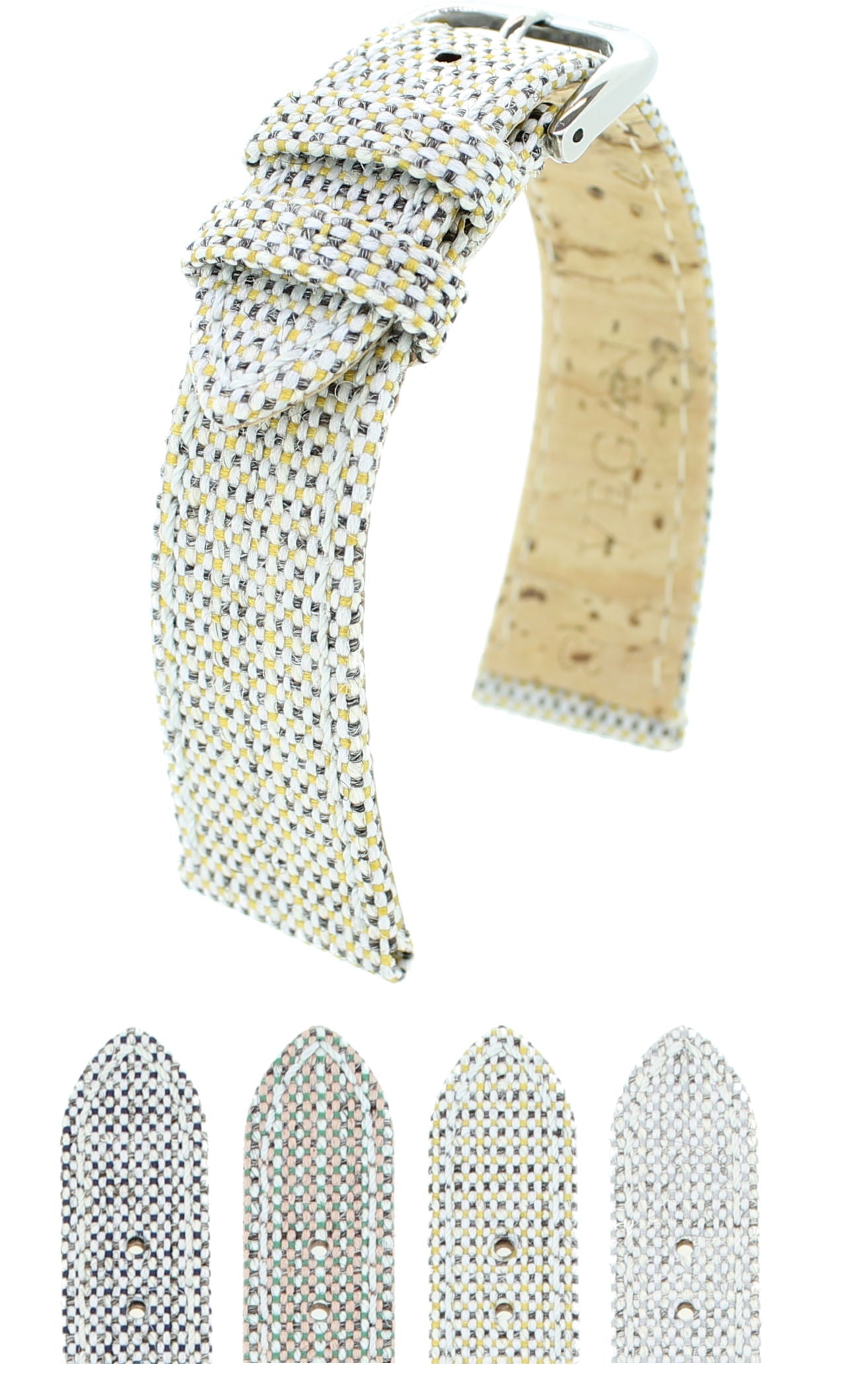 Découvrez notre bracelet de montre vegan, fabriqué à partir de matériaux 100 % naturels, pour les amateurs de montres éco-responsables. Cet élégant bracelet est fabriqué en lin de haute qualité, teinté végétalement et disponible en quatre coloris attrayants. Sa doublure en liège hypoallergénique garantit un confort optimal et est idéale pour les peaux sensibles. Disponible en trois largeurs différentes, notre bracelet s'adapte parfaitement à une variété de modèles de montres et s'associe particulièrement bien aux cadrans clairs ou très foncés. Un accessoire qui séduit non seulement par sa durabilité, mais aussi par son design élégant.